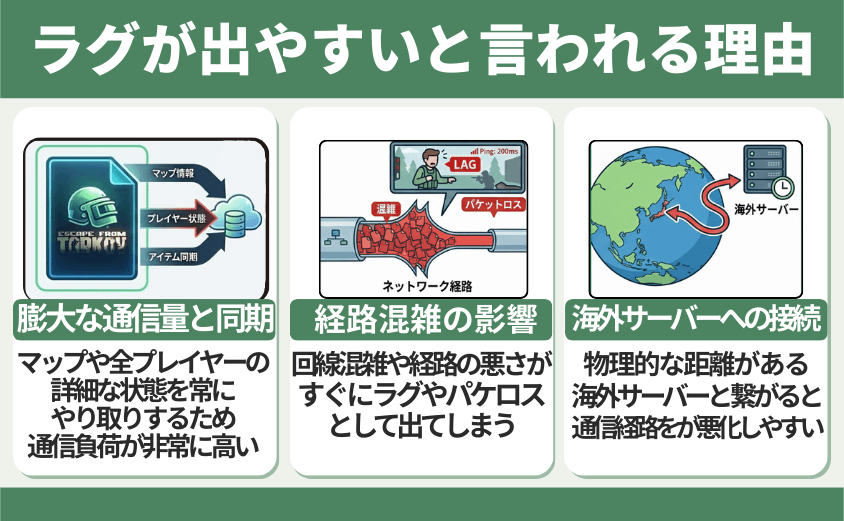 ここからは、タルコフのラグを引き起こす代表的な原因をわかりやすく解説します。