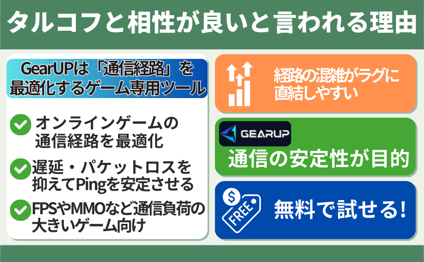 次の章では、GearUPがタルコフと相性が良いと言われる理由を詳しく紹介します。