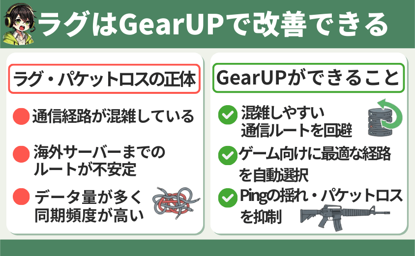 ここからは、ラグの正体とGearUPがどう改善につながるのかを順番に解説していきます。