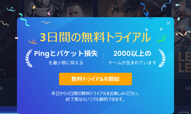 GearUPは無料で試用できるため、まずは自分の環境で効果が出るかどうか確認できます。地域や回線の違いでラグの原因は変わるため、無料でテストできるのは大きなメリットです。